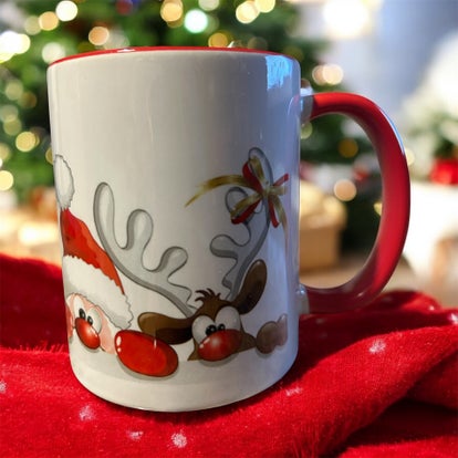 Santa & Reindeer on the mug and santa & reindeer with the words "Ho Ho Ho" on the coaster