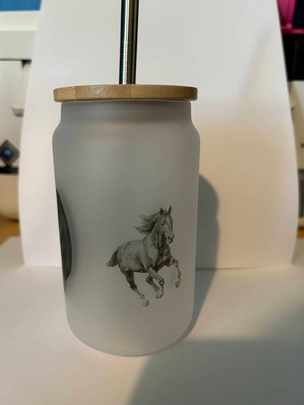 13oz frosted glass tumbler with bamboo lid and stainless steel straw