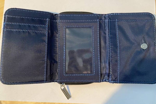 Contains 5 card slots, photograph panel, compartment for notes and zipped coin compartment.